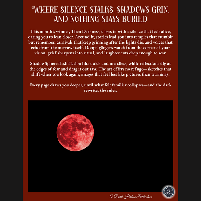 Dark Descent: Whispers from Beyond Vol. 16 invites you into a silence that breathes back. Inside, temples shift, carnivals never sleep, and doppelgängers wait with your smile. Every tale bends the ordinary into something dangerous, daring you to turn another page.